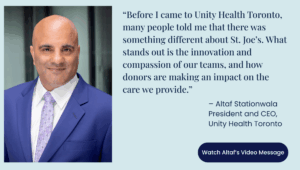 On July 1, 2025, Altaf Stationwala joined us as the new President & CEO of Unity Health Toronto.