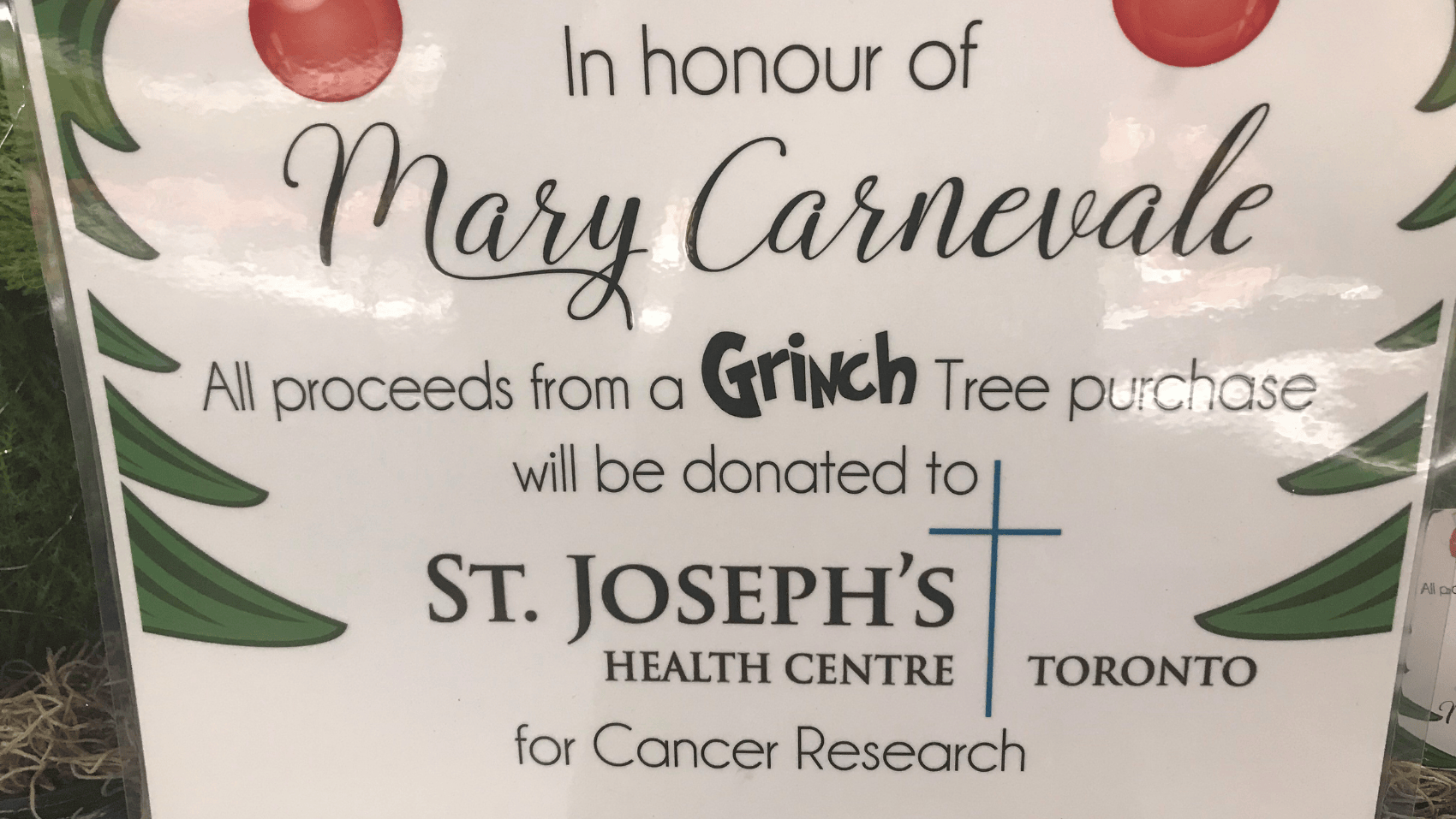 Inspired by her gratitude and generosity, the family began the Grinch Tree fundraiser in her honour, a tradition that now brings the community together each year to support oncology care close to home.
